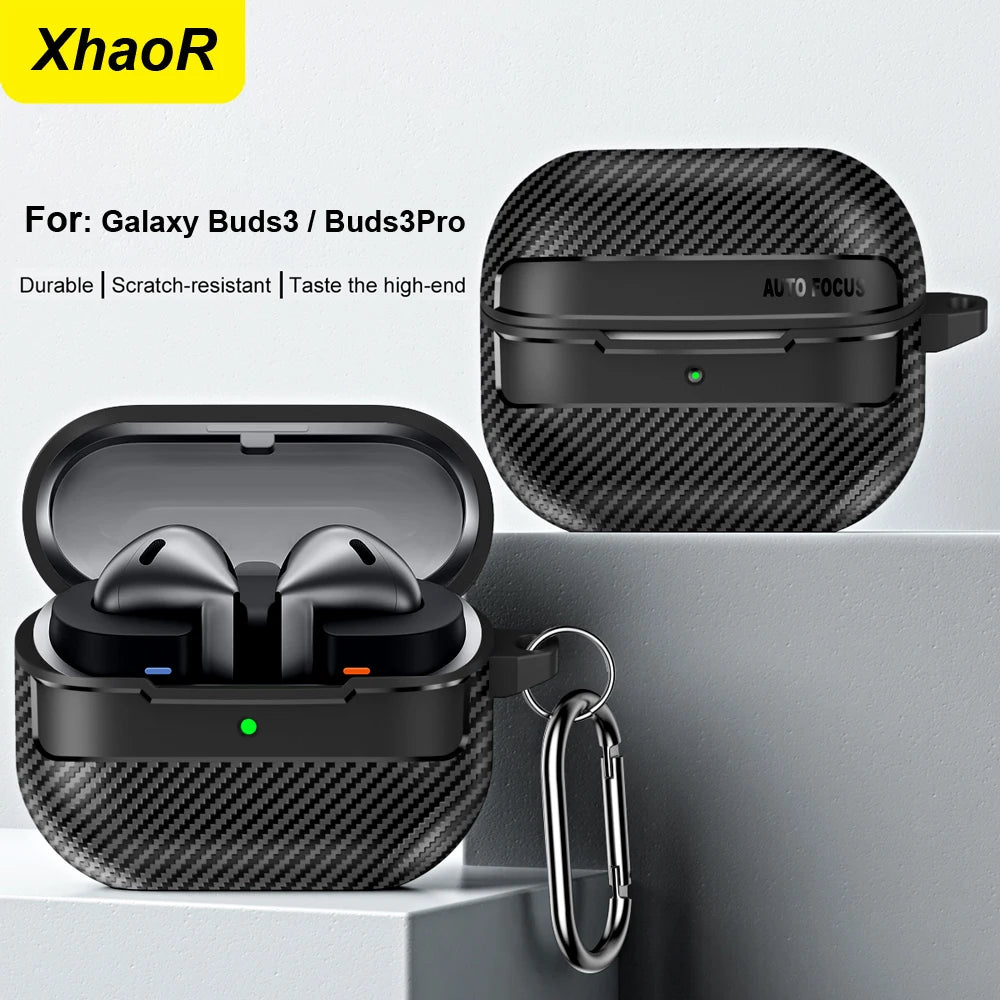 New Carbon Fiber Earphone Protective Cover For Samsung Galaxy Buds 3 / Buds 3 Pro Cover With Keychain Accessories Shockproof Bag